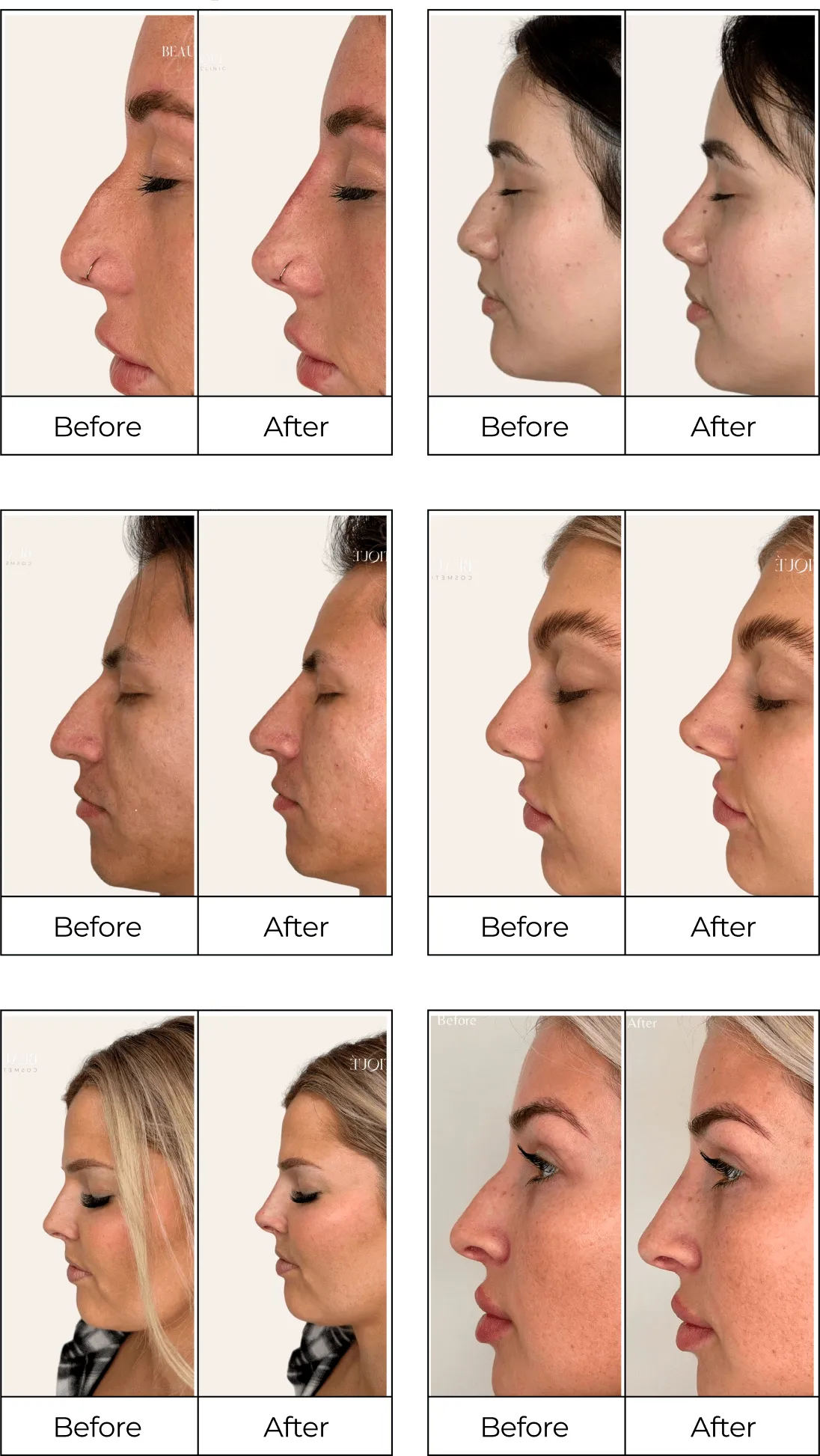 If you’re looking for a way to correct Dorsal humps, bumps, indents, droopy nasal tip, or an uneven nose - without painful surgery - then Beautique Cosmetic Clinic can help. We can correct and improve the appearance of these imperfections with a non-surgical rhinoplasty.