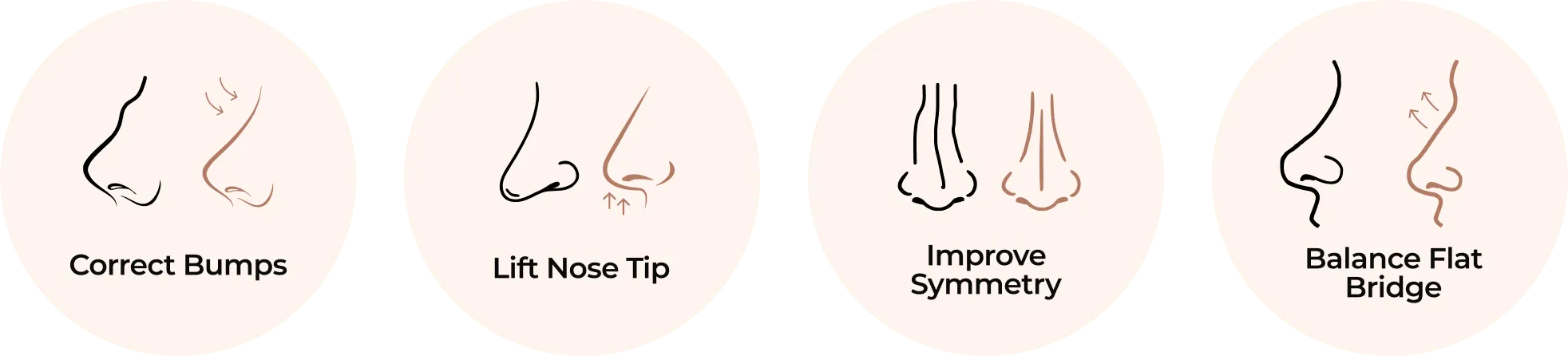 A Non-surgical rhinoplasty is a minimally invasive, quick and affordable solution. You can make natural-looking changes to your nose without painful surgery, long recovery times, or disrupting your work and personal life.